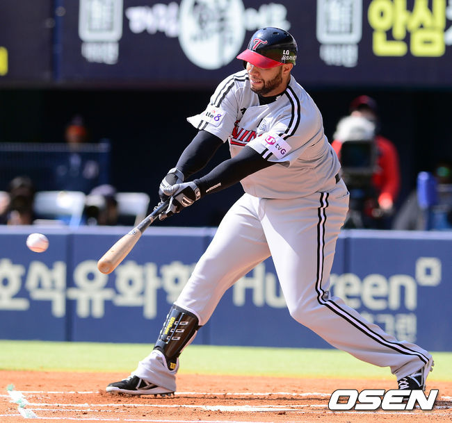 30일 오후 서울 잠실구장에서 열린 '2014 한국야쿠르트 세븐 프로야구' 두산 베어스와 LG 트윈스의 경기, 1회초 LG 조쉬벨이 안타를 날리고 있다.