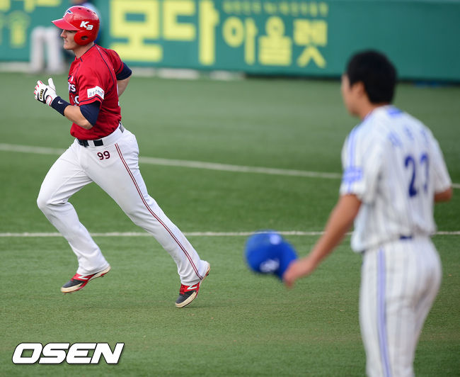 30일 오후 대구 시민구장에서 열린 '2014 한국야쿠르트 세븐 프로야구' 삼성 라이온즈와 KIA 타이거즈의 경기, 6회초 1사 주자 없는 상황에서 KIA 필이 좌월 솔로 홈런을 날린 후 그라운드를 돌고 있다.