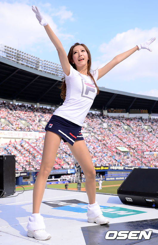 30일 오후 서울 잠실구장에서 열린 '2014 한국야쿠르트 세븐 프로야구' 두산 베어스와 LG 트윈스의 경기,두산 치어리더들이 멋진 공연을 펼치고 있다