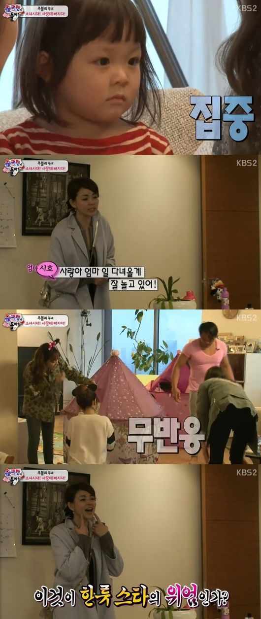 추사랑이 소녀시대와의 만남에 엄마를 잊은 듯한 모습을 보여 엄마를 서운하게 했다.