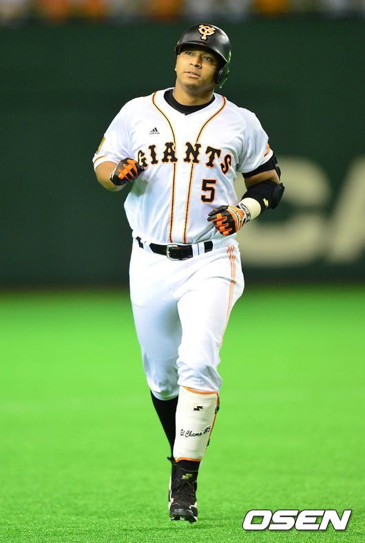 7회말 요미우리 공격 2사 만루 상황 호세 로페즈가 좌월 만루포를 날리고 그라운드를 돌고 있다.