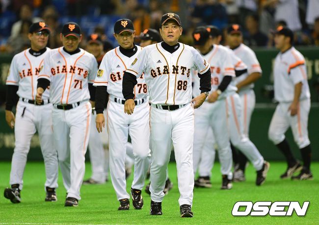 승리를 거둔 요미우리 하라 감독이 팬들에게 인사하기 위해 그라운드로 나서고 있다./dreamer@osen.co.kr