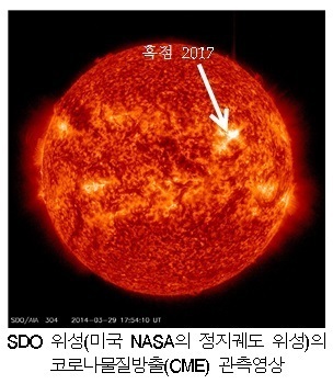 미래창조과학부 국립전파연구원(원장 서석진)은 3월 30일 새벽 2시 48분에 3단계 태양 흑점 폭발 현상이 발생했다고 밝혔다.