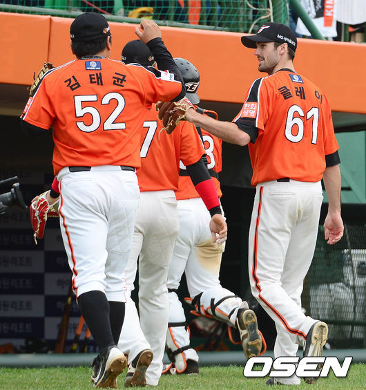 클레이도 "데뷔전에서 첫 승을 거두게 돼 기분이 좋다. 위기 상황을 잘 극복했지만 나 스스로는 제구와 구위에 만족할 수 없다다"며 "전세계 어느 나라든 실투는 쉽게 칠 수 있다. 앞으로 실투를 줄이기 위해 노력하겠다"고 말했다. 6회 2사 후 박종윤에게 2구째 커터가 가운 데로 몰린 것에 대한 아쉬움. 승리에도 반성이 뒤따랐다.