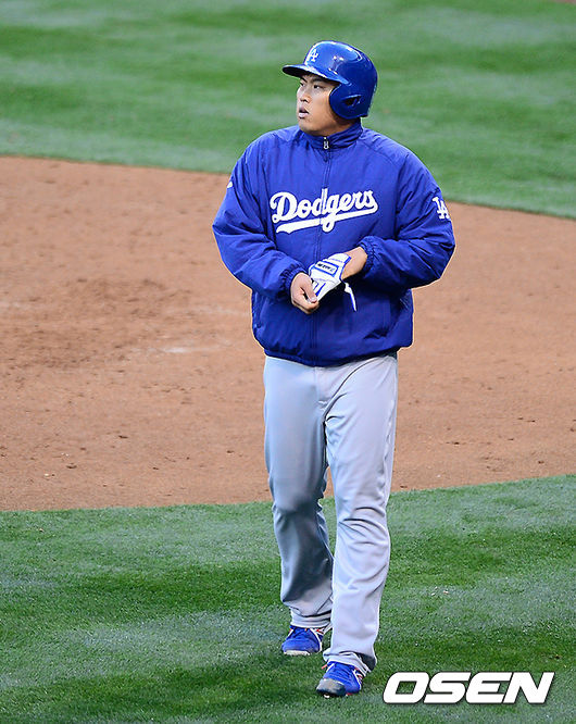 5회초 공격을 마친 류현진이 더그아웃으로 향하고 있다.