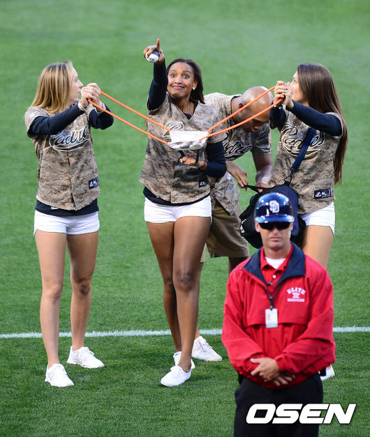 파드리스 치어리더가 팬들에 선물을 나눠주고 있다./ jpnews@osen.co.kr