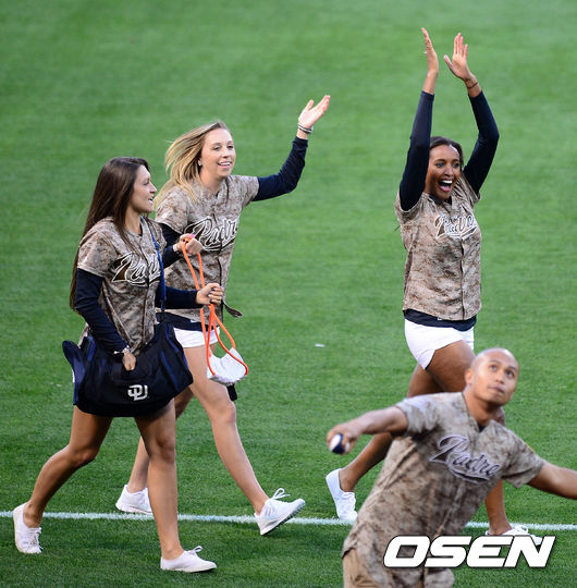 파드리스 치어리더가 팬들에 선물을 나눠주고 있다./ jpnews@osen.co.kr