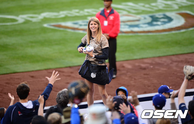 파드리스 치어리더가 팬들에 선물을 나눠주고 있다./ jpnews@osen.co.kr