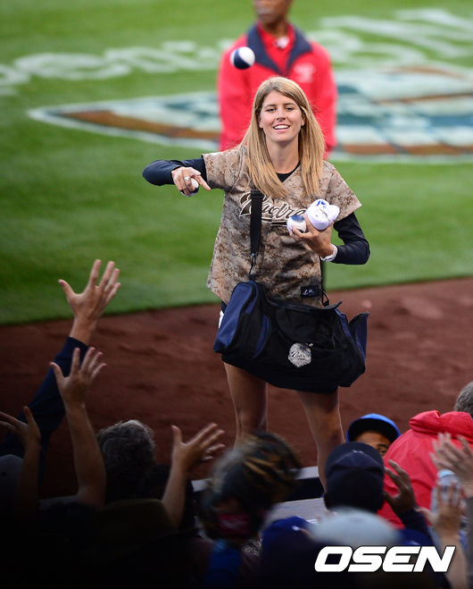 파드리스 치어리더가 팬들에 선물을 나눠주고 있다./ jpnews@osen.co.kr