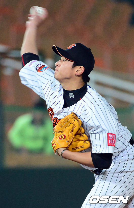 31일 오후 부산 사직구장에서 열린 '2014 한국야쿠르트 세븐 프로야구' 롯데 자이언츠와 한화 이글스의 경기 8회초 마운드에 올라온 최대성이 역투하고 있다.