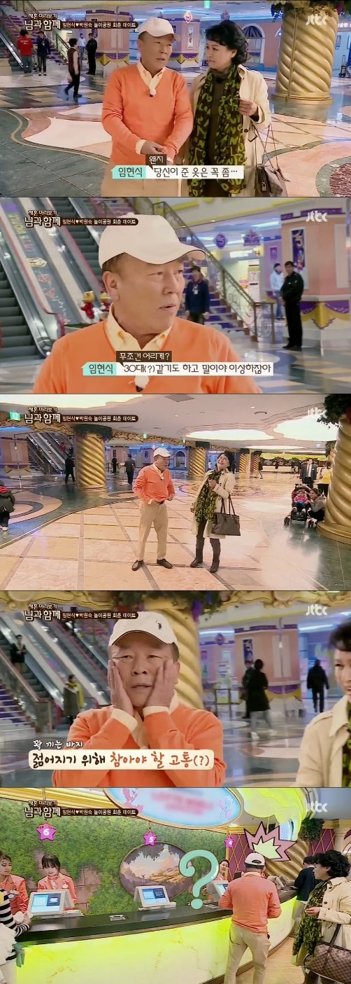 31일 오후 방송된 JTBC 예능 프로그램 '재혼 미리보기 - 님과 함께'에는 아내의 마음을 얻기 위해 놀이공원 데이트를 계획한 임현식의 모습이 그려졌다.