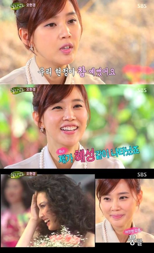 오현경은 31일 오후 방송된 SBS 예능프로그램 '힐링캠프-기쁘지 아니한가'에서 미스코리아 진을 수상했던 때를 떠올리며 선이었던 고현정에 대해 "고현정 참 에뻤다"고 말했다.