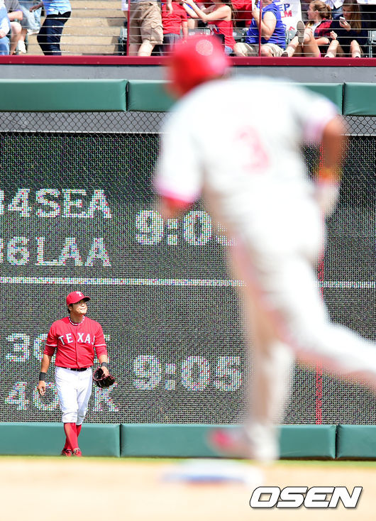 6회초 2사에서 텍사스 추신수가 필라델피아 버드의 좌월 솔로포에 아쉬워하고 있다 ./ jpnews@osen.co.kr