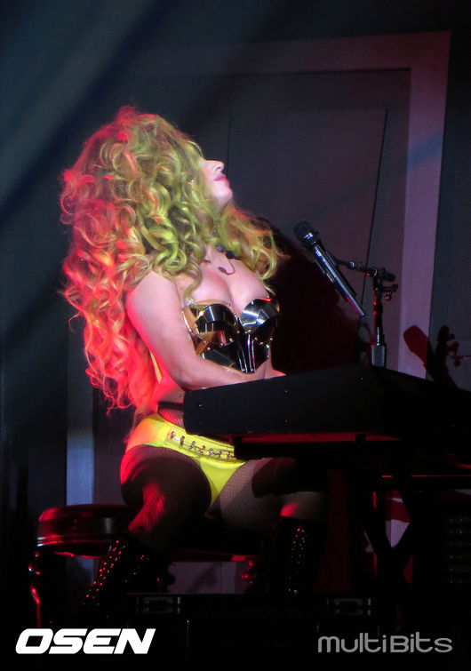 [OSEN=사진팀] 팝스타 레이디 가가(Lady Gaga)가 30일(현지시간) 미국 뉴욕 로즈랜드 볼룸에서 진행된 콘서트에서 파격적인 퍼포먼스를 펼치고 있다.