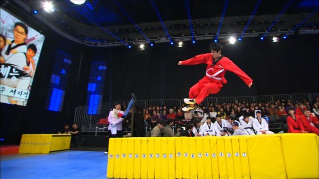 서지석은 1일 방송되는 KBS 2TV '우리동네 예체능'을 통해 태권도 발 격파 대결을 펼치던 중 공중에 날아올랐다.