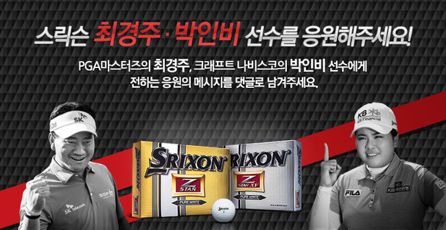 이번 이벤트는 최경주의 PGA 마스터즈 대회 우승과 박인비의 크래프트 나비스코 챔피언십 우승을 기원하기 위해 기획되었다. 던롭 페이스북 이벤트 페이지에 오는 13일까지 둘에게 전하는 응원 메시지를 댓글로 작성하면 응모 완료되며, 추첨을 통해 스릭슨 캐디백(1명), 스릭슨 골프우산(3명), 스릭슨 Z-STAR 볼(10명), 스릭슨 모자(10명) 등 푸짐한 경품을 증정한다.