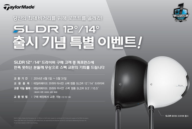 또한 12°와 14°의 SLDR 드라이버 출시를 기념해 무상 로프트 교환 이벤트도 진행한다. 테일러메이드 코리아의 아시안 스펙 정품인 12° 혹은 14°의 SLDR 드라이버를 구매한 고객들은 사용 후 퍼포먼스에 대한 변화가 없다고 판단되면 9.5° 또는 10.5°의 낮은 로프트로 교환할 수 있다. 이벤트 기간은 4월 1일부터 5월 31일까지 2달 간이며 처음 드라이버를 구매한 매장에서 교환 가능하다. (1인 1회 제한/애프터 마켓 샤프트 제외) 해당 이벤트는 높은 로프트에 대한 소비자들의 고정관념을 바꾸는 것과 동시에 SLDR 드라이버에 대한 테일러메이드의 자신감을 표현했다.