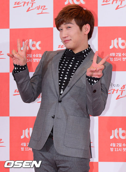 1일 오후 서울 호암아트홀에서 진행된 JTBC 새 예능 프로그램 '한국인의 뜨거운 네모'(이하 '뜨거운 네모') 제작발표회에서 유세윤이 포토타임을 갖고 있다.