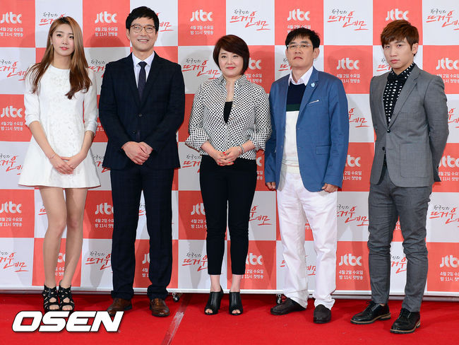 1일 오후 서울 호암아트홀에서 진행된 JTBC 새 예능 프로그램 '한국인의 뜨거운 네모'(이하 '뜨거운 네모') 제작발표회에서 수빈 함익병 최유라 이경규 유세윤이 포토타임을 갖고 있다.