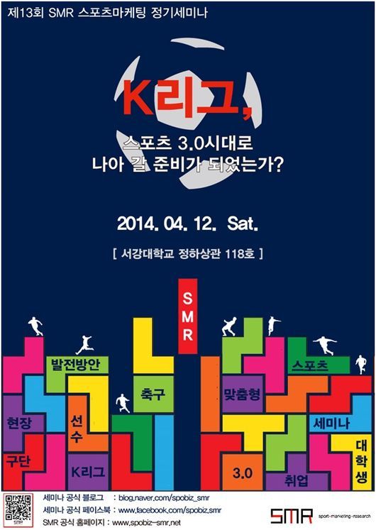 스포츠마케팅 커뮤니티 SMR(Sport Marketing Research)은 오는 12일 오후 1시 서강대학교 정하상관에서 ‘제13회 SMR 스포츠마케팅 정기세미나’를 개최한다.