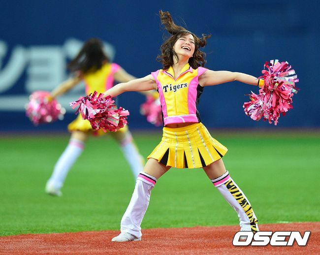 경기 시작을 앞두고 한신 치어리더들이 멋진 공연을 펼치고 있다.