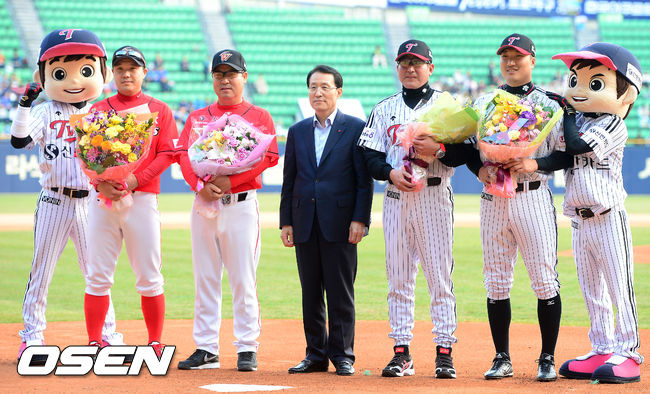 1일 오후 잠실구장서 열린 '2014 한국야쿠르트 세븐 프로야구' LG 트윈스와 SK 와이번스의 홈 개막전, 경기 전 포토타임이 진행되고 있다.