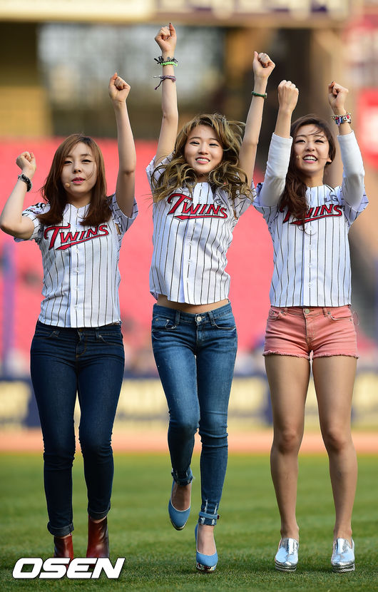 1일 오후 잠실구장서 열린 '2014 한국야쿠르트 세븐 프로야구' LG 트윈스와 SK 와이번스의 홈 개막전, 경기 전 레이디스 코드가 미소짓고 있다.