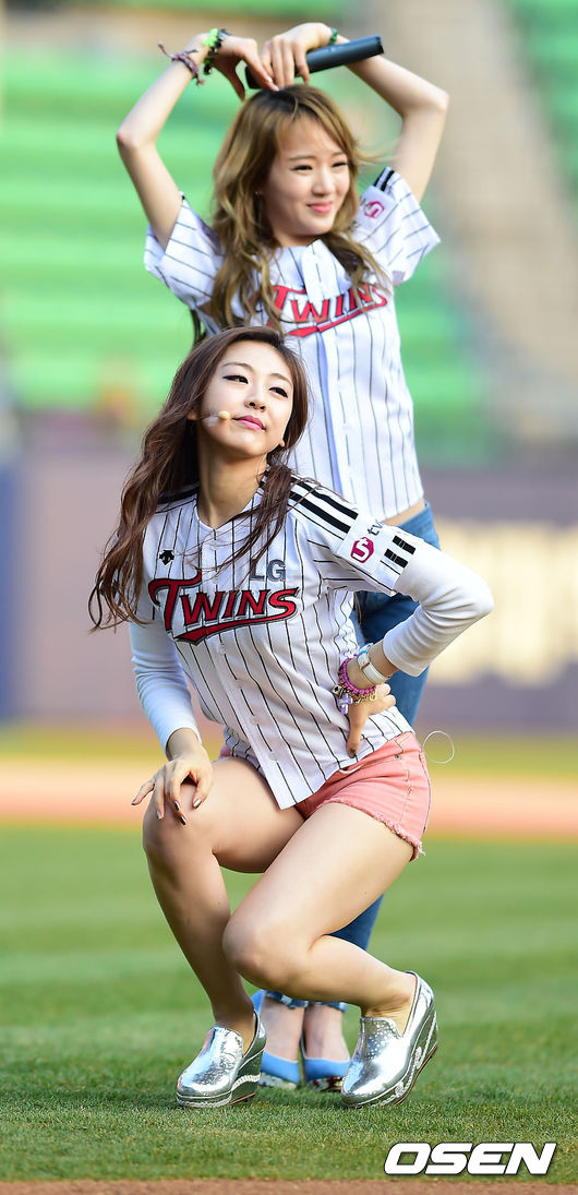1일 오후 잠실구장서 열린 '2014 한국야쿠르트 세븐 프로야구' LG 트윈스와 SK 와이번스의 홈 개막전, 경기 전 레이디스 코드가 그라운드 위에서 공연을 펼치고 있다.
