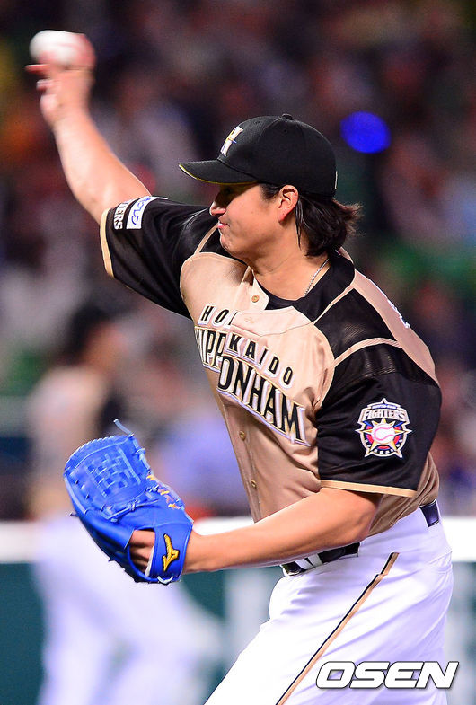1회말 니혼햄 루이스 멘도사가 역투하고 있다.
