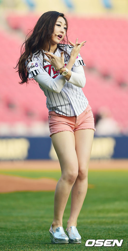 1일 오후 잠실구장서 열린 '2014 한국야쿠르트 세븐 프로야구' LG 트윈스와 SK 와이번스의 홈 개막전, 경기 전 레이디스 코드가 축하공연을 하고 있다.