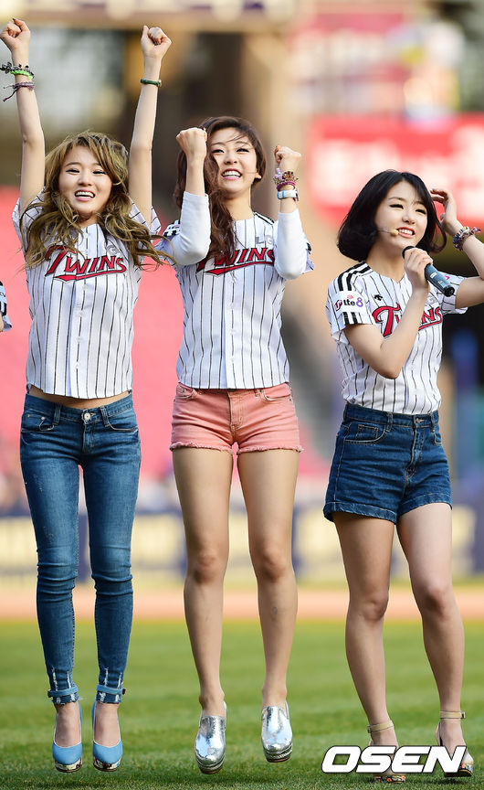 1일 오후 잠실구장서 열린 '2014 한국야쿠르트 세븐 프로야구' LG 트윈스와 SK 와이번스의 홈 개막전, 경기 전 레이디스 코드가 축하공연을 하고 있다.
