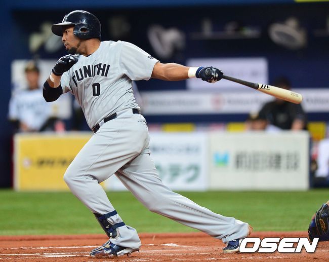 4회초 주니치 공격 선두타자로 나선 헥터 루나가 내야 안타를 날리고 있다.