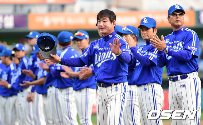경기에 앞서 개막식 행사에서 삼성 류중일 감독이 관중석을 향해 인사를 하고 있다.