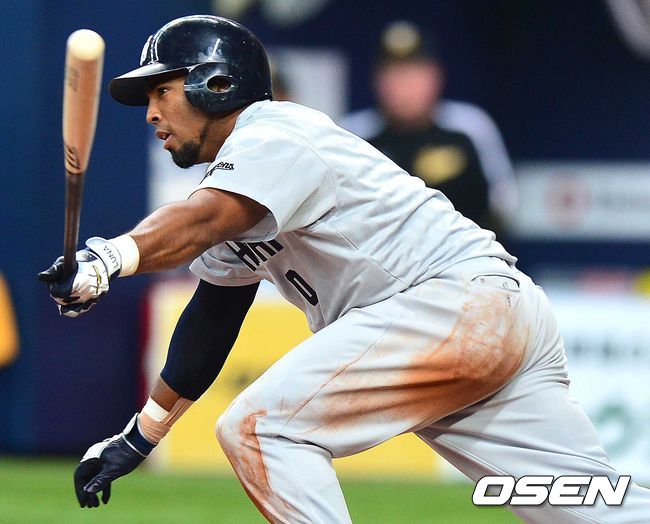 6회초 주니치 공격 1사 1, 2루 상황 헥터 루나가 선제 1타점 적시타를 날리고 있다.
