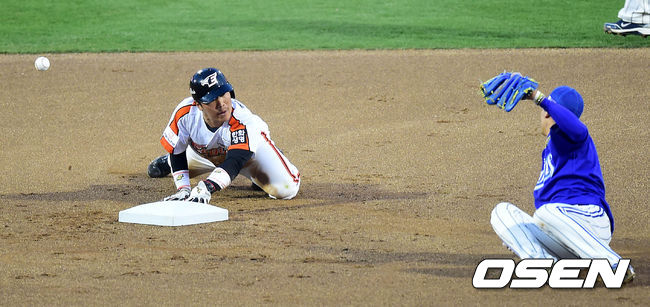1회말 1사 1루에서 한화 피에 타석때 1루주자 정근우가 도루에 성공하고 있다.