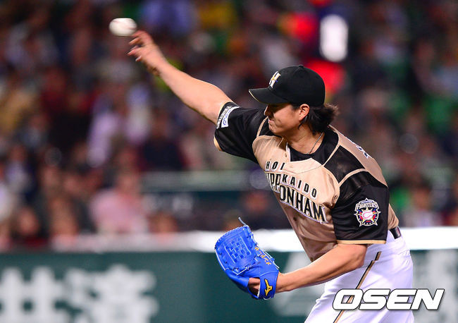 1회말 니혼햄 루이스 멘도사가 역투하고 있다.