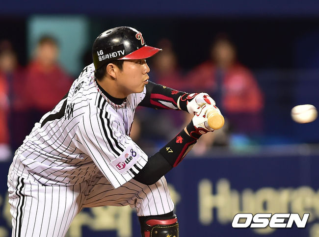 1일 오후 잠실구장서 열린 '2014 한국야쿠르트 세븐 프로야구' LG 트윈스와 SK 와이번스의 홈 개막전, 4회말 무사 주자 2루 LG 조윤종이 희생번트를 시도하고 있다.