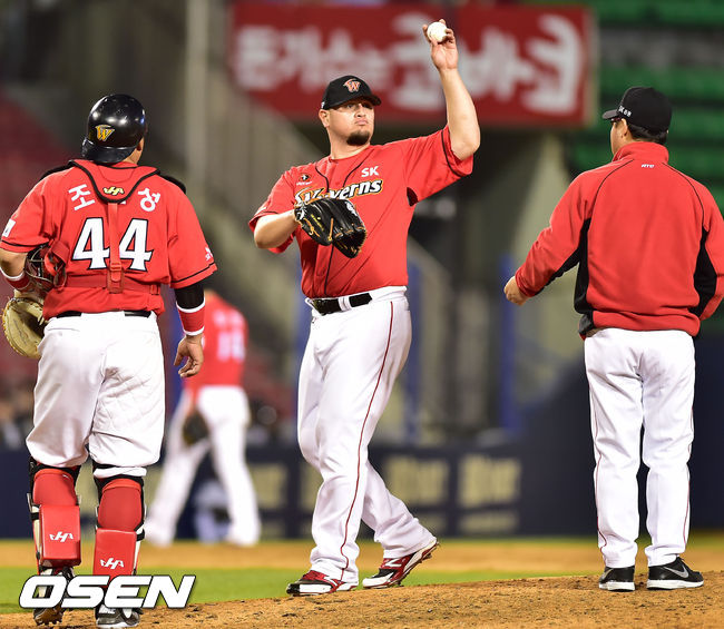 1일 오후 잠실구장서 열린 '2014 한국야쿠르트 세븐 프로야구' LG 트윈스와 SK 와이번스의 홈 개막전, 6회말 무사 주자 1루 LG 김용의 타석에서 SK 선발 레이예스가 교체되고 있다.