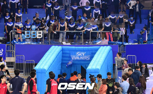 경기종료 후 현대캐피탈 팬들이 퇴장하는 심판진들을 향해 응원도구를 던지고 있다. / soul1014@osen.co.kr