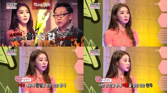 가영은 1일 오후 첫 방송된 KBS 2TV 새 파일럿프로그램 '역지사지 토크쇼-대변인들'(이하 대변인들)에 출연해 '마리오네트'로 활동했을 당시 불거진 논란에 대해 밝혔다.