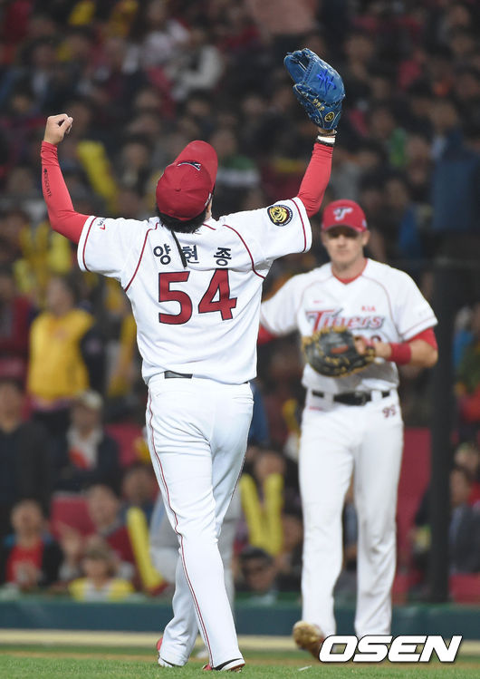 경기후 양현종은 "새 구장에서 첫 경기는 우리 팀이 반드시 이겨야 한다고 생각했다. 첫 승리 투수가 되어 영광이다. 새 구장의 첫 선발이라서 부담과 긴장이 많이돼서 초반에 흔들렸다. 포수 일목형이 차분하게 하라고 해서 마음을 가다듬고 던져 경기가 잘 풀렸다. 8회에 코치님이 등판여부를 물었는데 첫 승 기회를 놓치고 싶지 않아 자원등판했다. 일요일 등판은 문제 없을 것이다"고 말했다.
