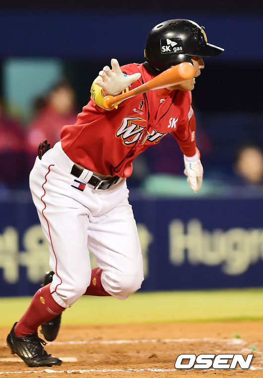 1일 오후 잠실구장서 열린 '2014 한국야쿠르트 세븐 프로야구' LG 트윈스와 SK 와이번스의 홈 개막전, 7회초 1사 주자 2,3루 SK 조동화가 2타점 적시타를 날리고 있다.