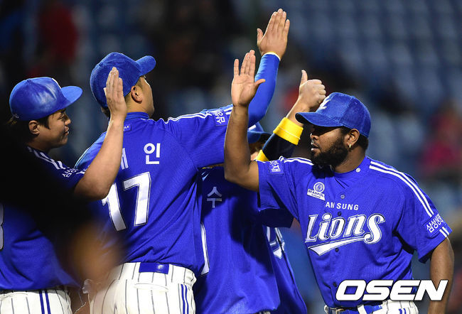 경기 종료 후 삼성 선수들이 승리의 기쁨을 나누고 있다./sunday@osen.co.kr