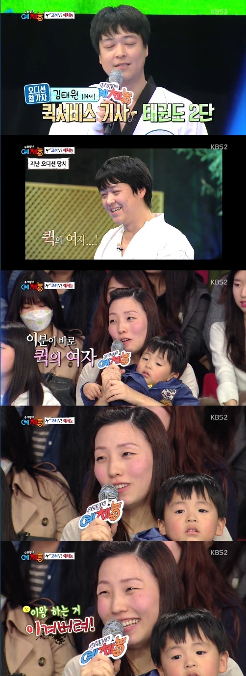 ‘우리동네 예체능’ 태권도 오디션 편에서 감동을 선사했던 퀵서비스 기사 김태원씨의 아내가 스튜디오에 등장했다.