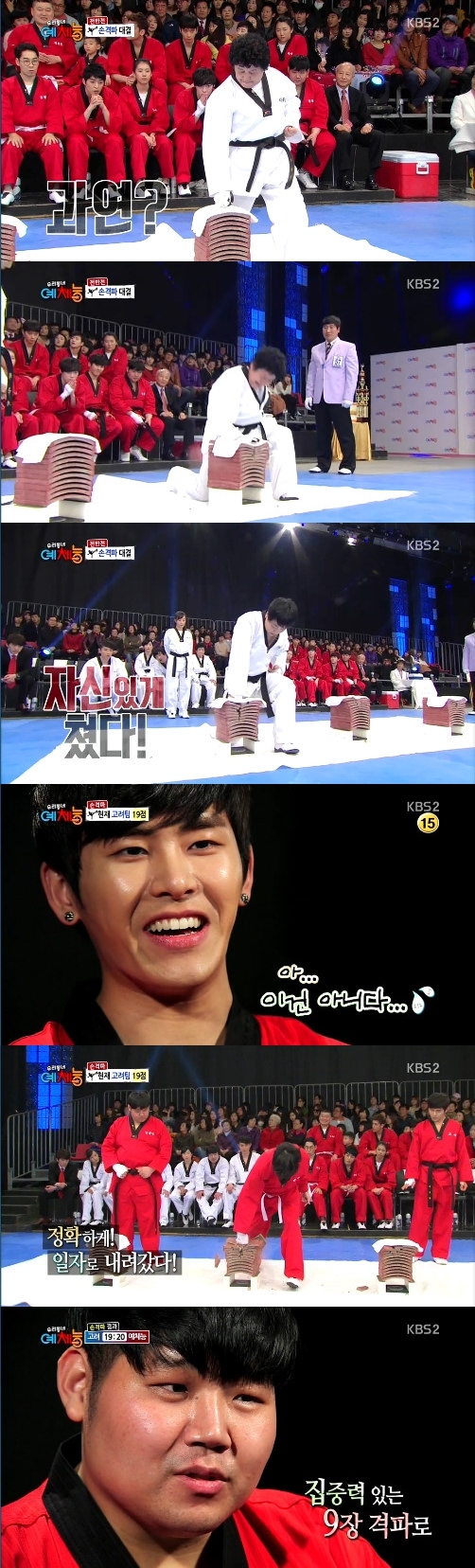 그러나 존박과 김종겸이 선전하며 호야의 아쉬움을 깨끗하게 털어냈다. 두 번째로 등장한 존박은 정확히 일자로 내려친 결과 기왓장 7장을 산산조각냈다.