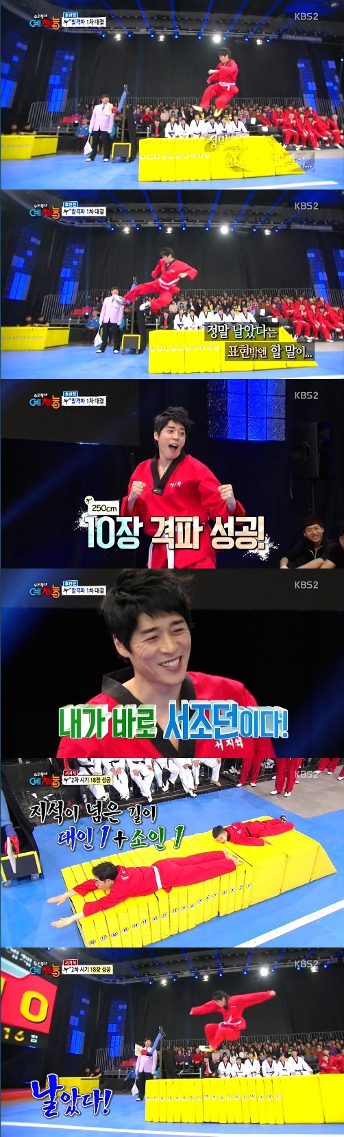 서지석이 또 한번 날았다. 타의 추종을 불허하는 점프력으로 ‘에어 지석’이란 별명을 가지고 있는 서지석은 태권도에서도 활약하며 발격파 에이스로 등극했다.