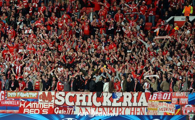 바이에른 뮌헨 서포터들이 응원에 나서고 있다.
