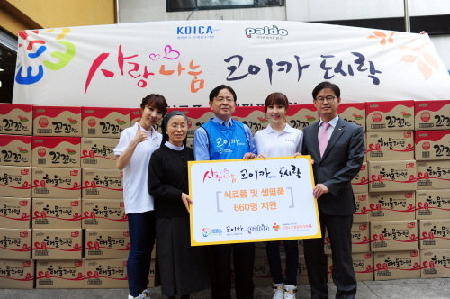 트로트 듀오 윙크가 코이카(한국국제협력단) 주최 ‘사랑나눔! 코이카 도시락’ 행사에 참여해 주위를 훈훈케 했다.
