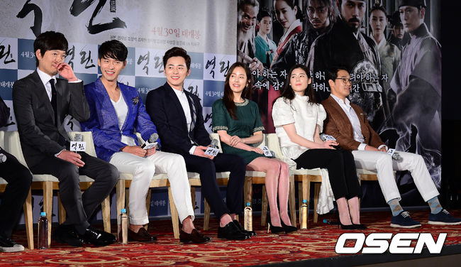 2일 오전 서울 광진구 롯데시네마 건대입구에서 열린 영화 '역린' 제작보고회에 정재영, 현빈, 조정석, 한지민, 정은채, 박성웅이 참석하고 있다.