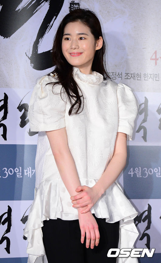 2일 오전 서울 광진구 롯데시네마 건대입구에서 열린 영화 '역린' 제작보고회에서 정은채가 포토타임을 갖고 있다.